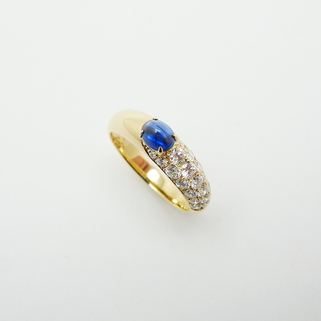 ギメル カボションカット サファイア ダイヤモンド リング 12号 0.518ct 0.508ct 18KYG 新品仕上げ SAランク 518058