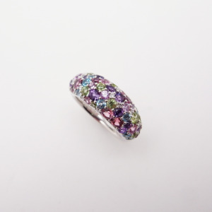 ポンテヴェキオ パヴェ マルチカラークオーツ ピンクサファイア ダイヤモンド リング 10号 0.20ct 0.11ct K18WG 新品仕上げ Sランク 518066