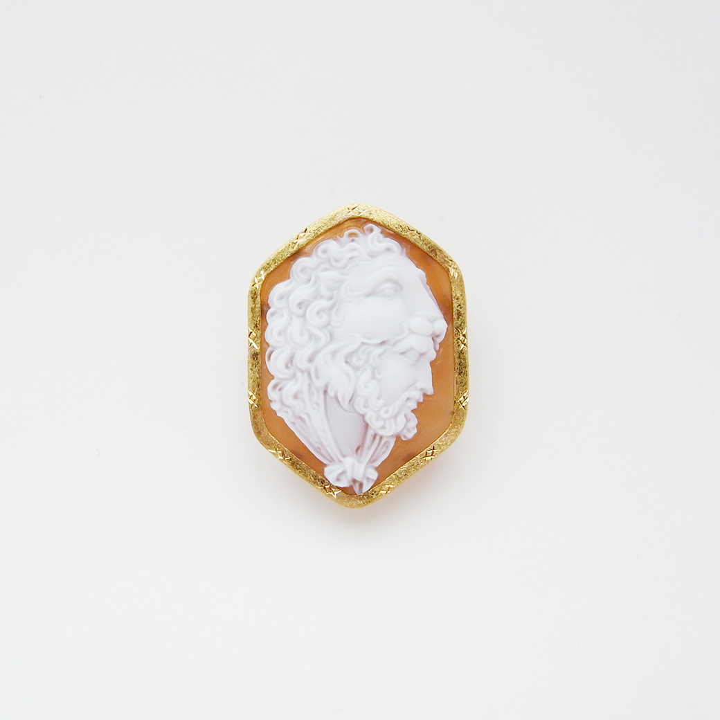ヘラクレス モチーフ シェルカメオ ブローチ K18YG SAランク 518209