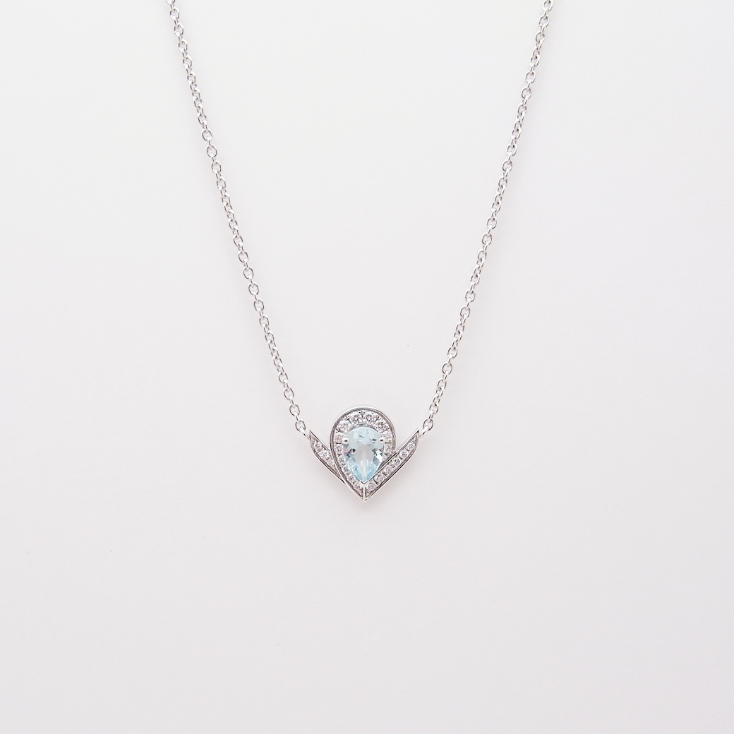 ショーメ ジョゼフィーヌ コレクション エグレット ペンダント ネックレス アクアマリン ダイヤモンド 0.60ct 0.19ct 750WG 証明書 箱 付き Sランク 518285