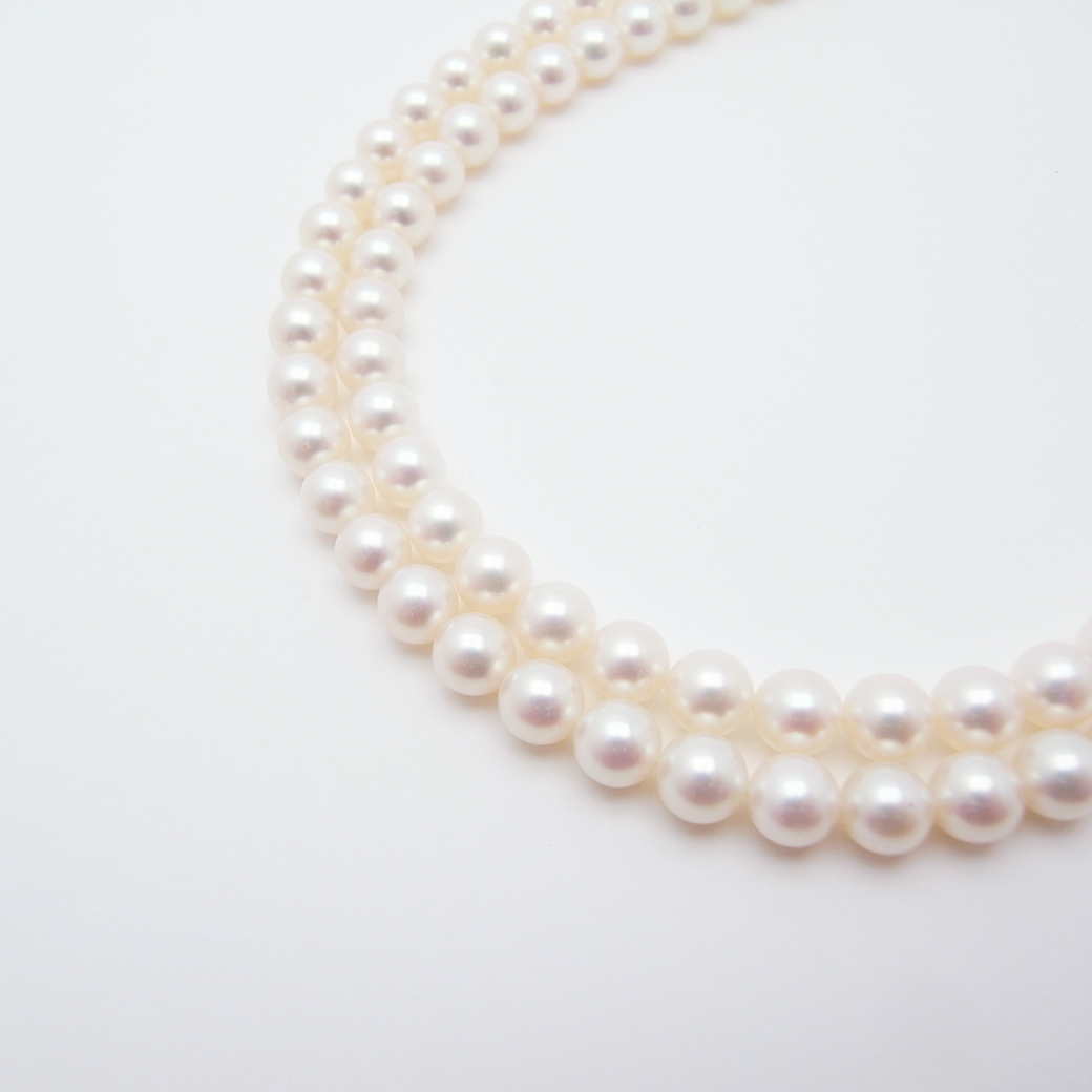 ミキモト アコヤ真珠 ロング ネックレス 6.9〜6.5mm 110cm K14WG ケース 付き SAランク 517169