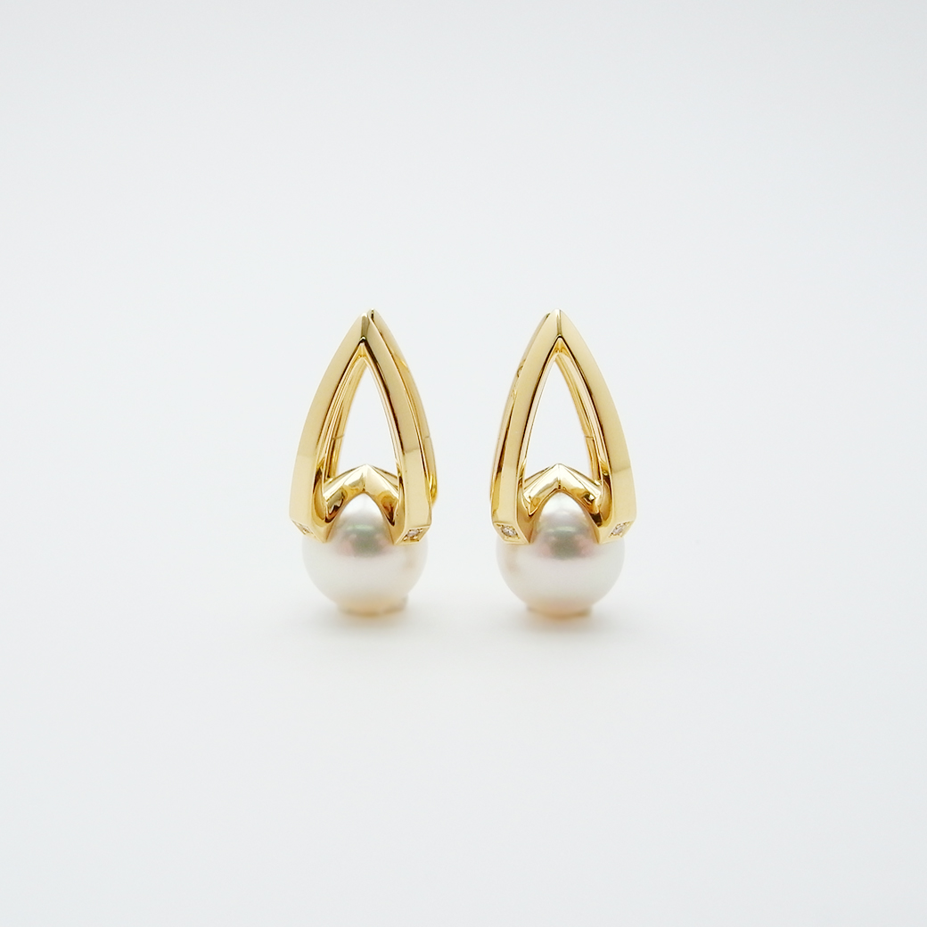 ミキモト アコヤ真珠 ダイヤモンド イヤリング 8.1mm K18YG 箱 付き SAランク 518187