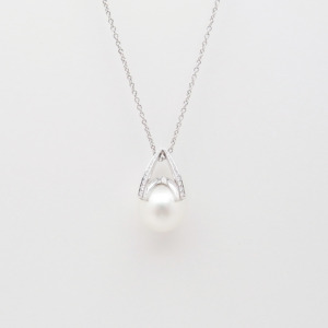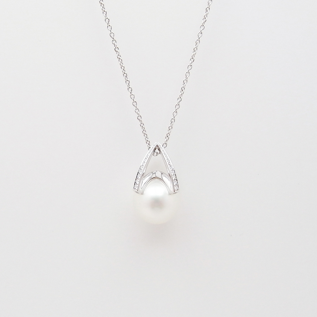 ミキモト M コレクション ペンダント ネックレス 白蝶真珠 ダイヤモンド 12.6mm 約0.25ct 750WG 箱 付き Sランク 518283
