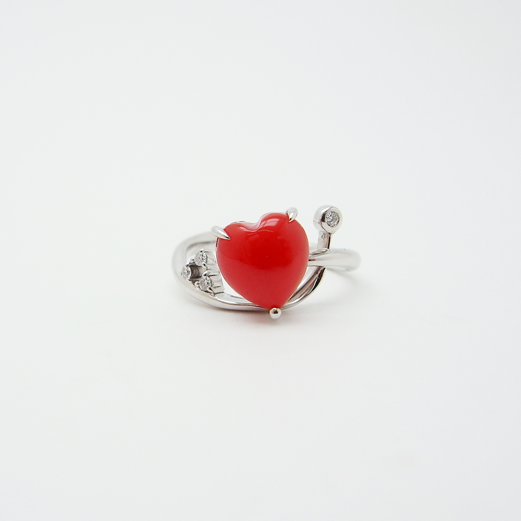 ハートシェイプ サンゴ ダイヤモンド リング 11号 0.04ct K18WG SAランク 518133