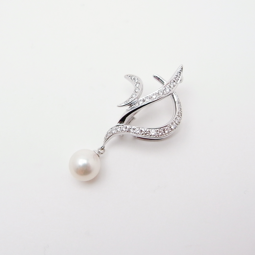 ポーラ アコヤ真珠 ダイヤモンド ブローチ 8.1mm 0.41ct K18WG SAランク 518149