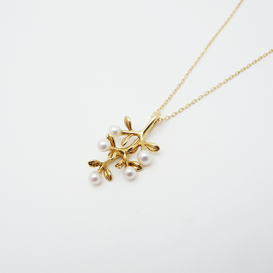 ミキモト オリーブ モチーフ アコヤ真珠 ペンダント ネックレス 4.7-3.9mm K18YG 箱 付き SAランク 517960