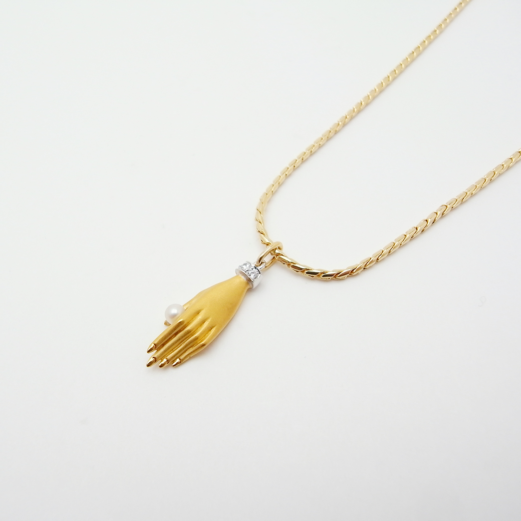 カレライカレラ ハンドモチーフ パール ダイヤモンド ペンダント ネックレス 2.8mm 750YG SAランク 517968
