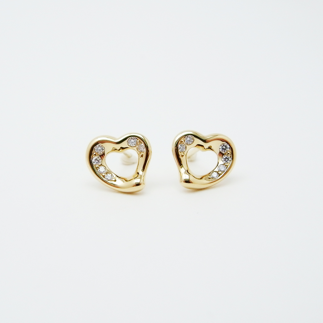 ティファニー オープンハート スタッド ピアス ダイヤモンド 750YG 新品仕上げ Sランク 517869