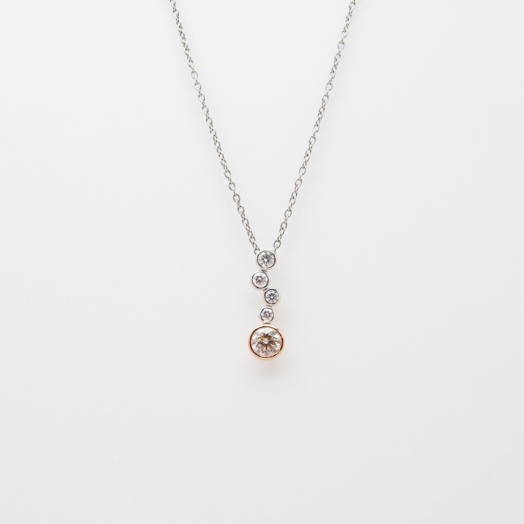 カシケイ ベゼル ペンダント ネックレス ブラウンダイヤモンド ダイヤモンド 0.25ct 0.12ct K18PG/Pt900/Pt850 Sランク 518022
