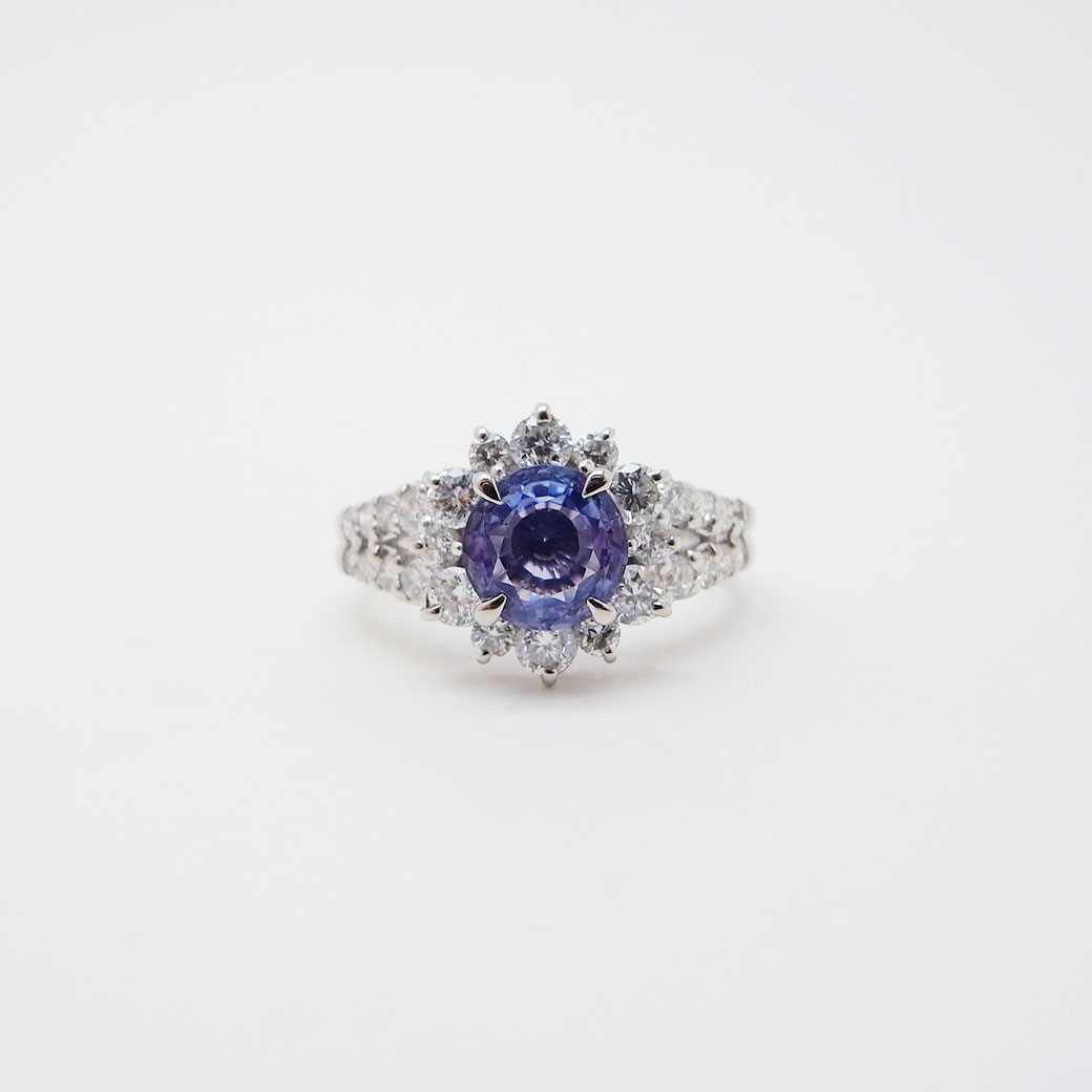 スリランカ産 非加熱 サファイア ダイヤモンド リング 1.313ct 0.81ct 11号 Pt900 鑑別書 分析レポート 付き SAランク 517680