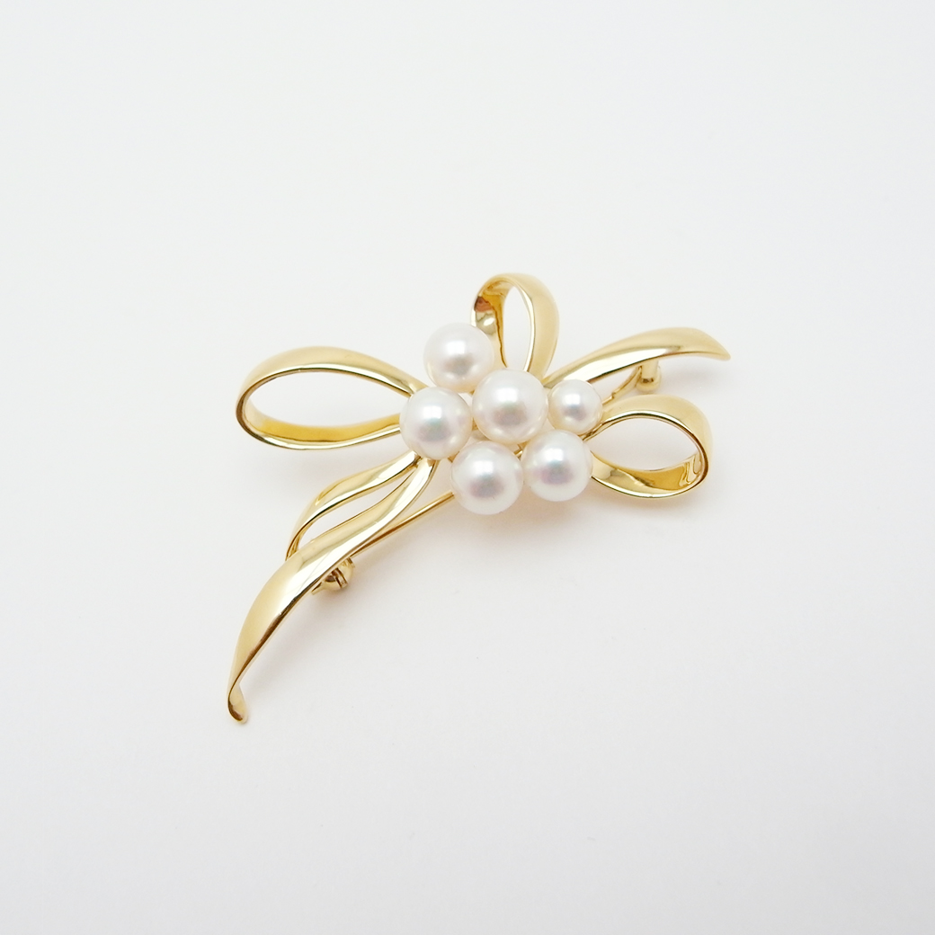 ミキモト アコヤ真珠 ブローチ 6.3〜4.8mm K18YG SAランク 517883