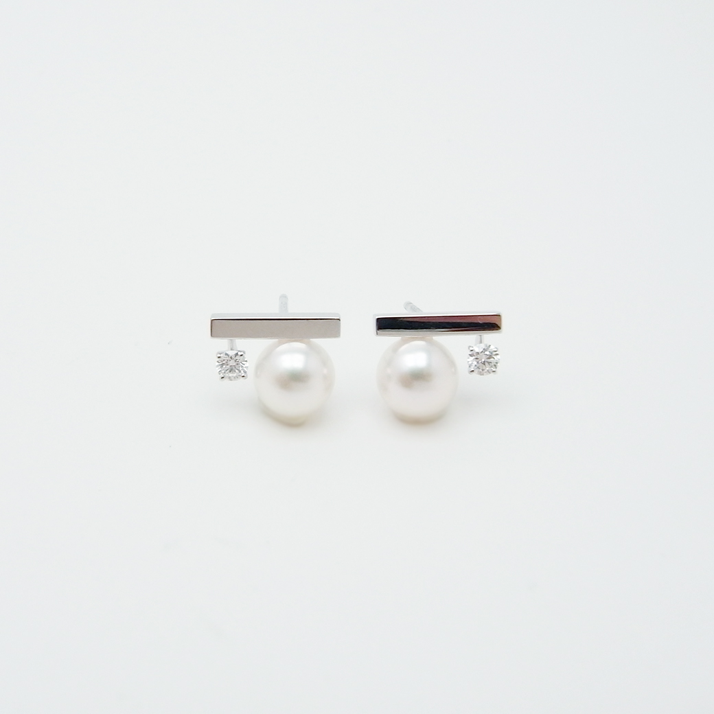 タサキ プチ バランス クラス ピアス あこや真珠 ダイヤモンド 6.8mm 0.10ct 750WG 箱 付き Sランク 517892