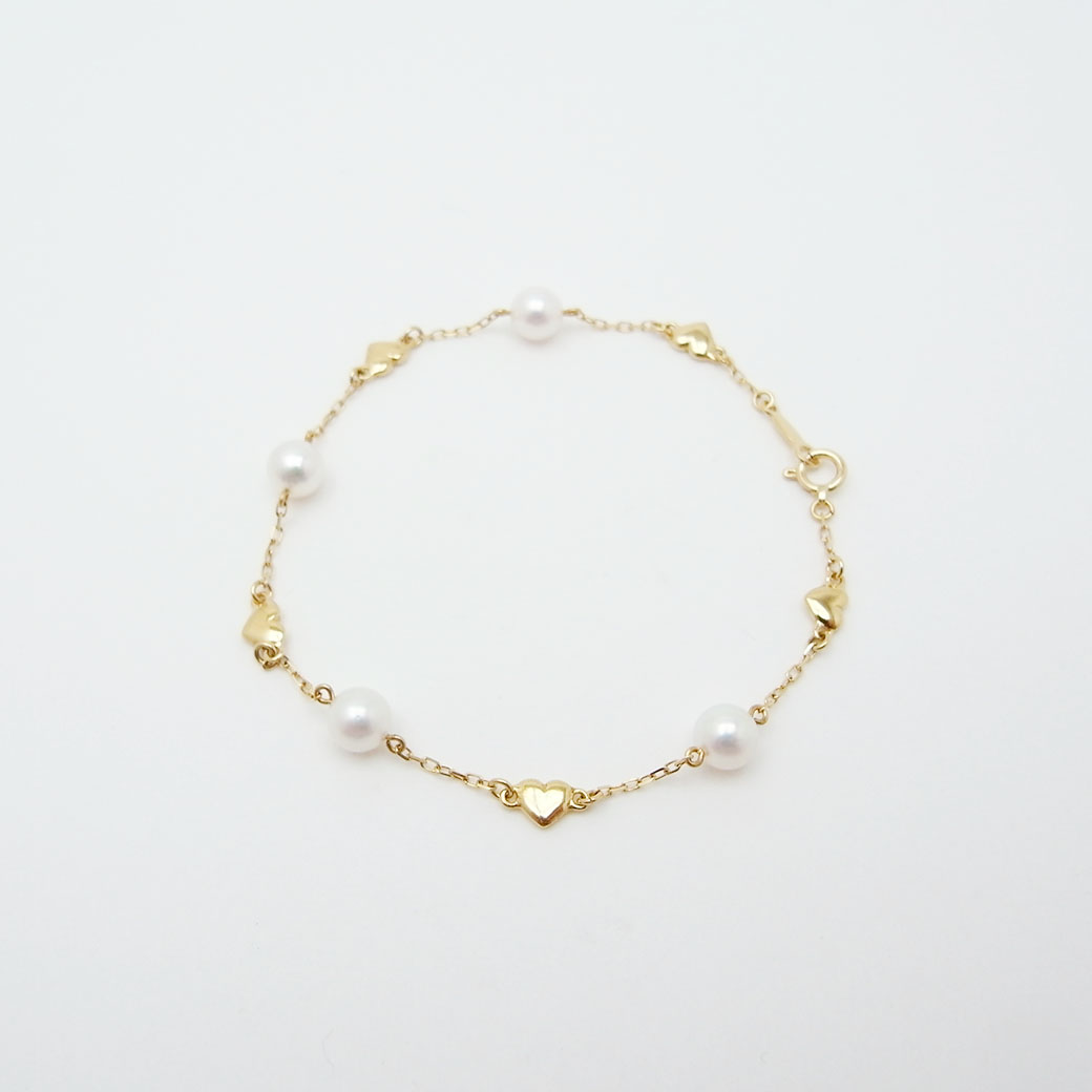 ミキモト ハートモチーフ アコヤ真珠 ステーション ブレスレット 5.7mm 17.5cm K18YG 新品仕上げ SAランク 517849